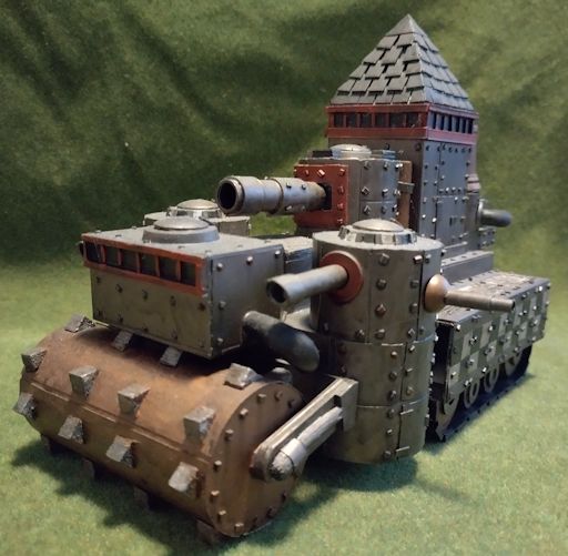 This battlefortress was made by combining lots of Leman Russ track sections I had left over from my squat conversions. This alternate battlefortress started out as a Baneblade that is now backwards. Known as the Giblet Grinda, this battlefortress was released as an epic scale model and I have upscaled it to 40k scale. A heavily armed scratchbuilt howdah was added to an Age opf Sigmar Maw Krusha to create this feal Snake Bite Gorkanaut. |